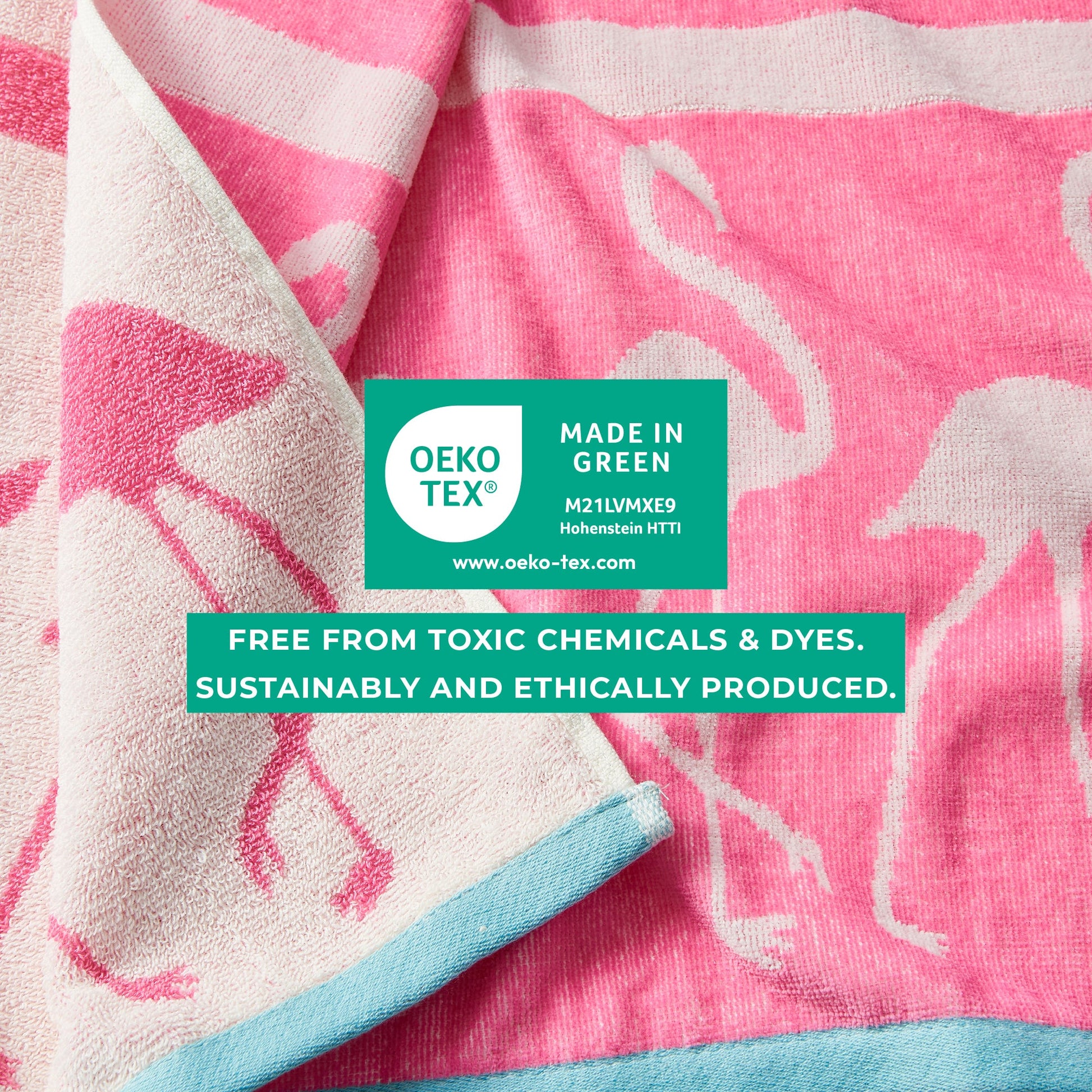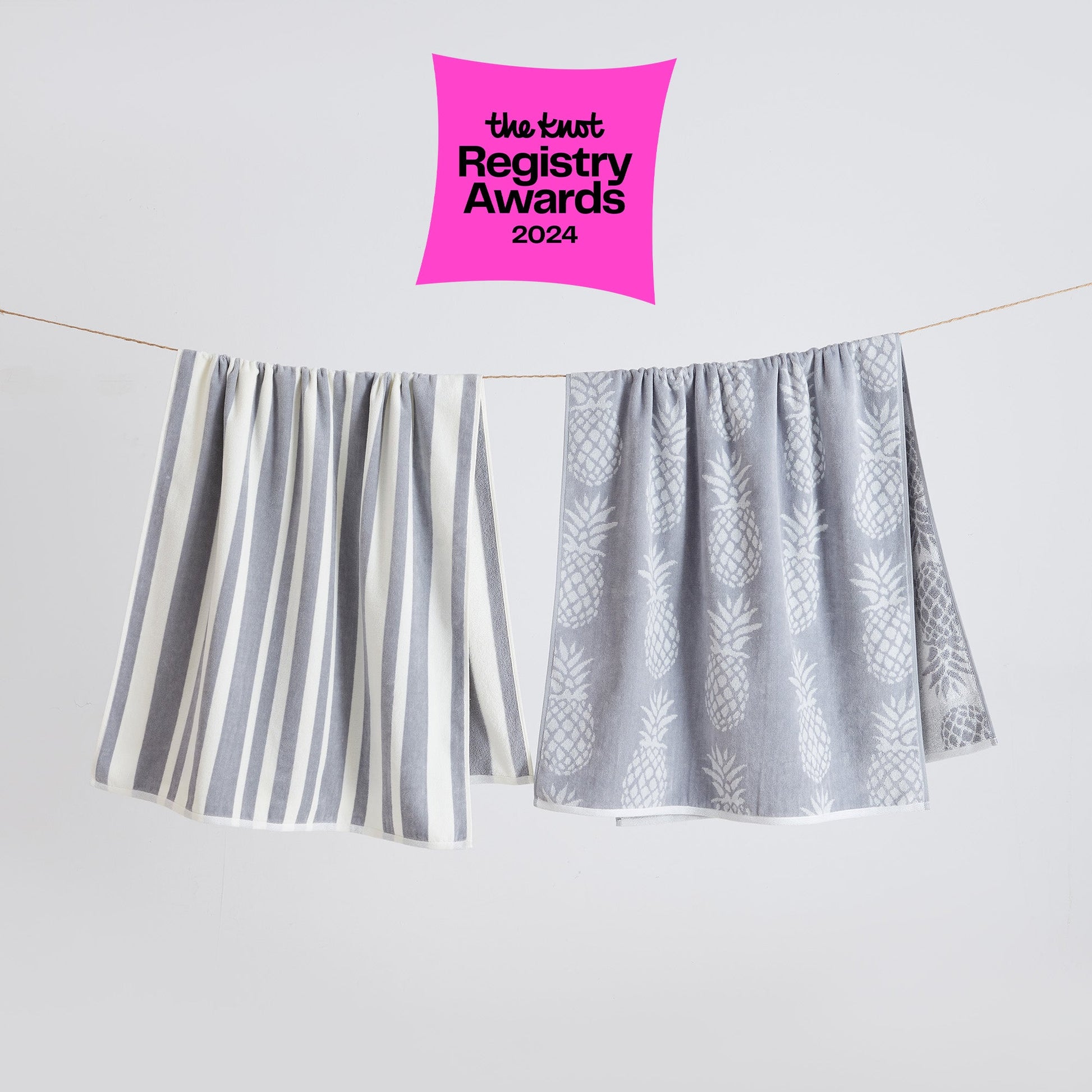 Quality, vibrant cotton beach towels are the way to go for summer! You'll receive a printed towel featuring summer-inspired prints and a matching simple striped towel in this two-pack set. These towels are made from plush, 100% cotton, and are super soft but still deliver the durable feature all towels should have. You can take these towels to the beach, pool, or your next camping trip, or keep them at home in your bathroom - wherever the summer adventure takes you! Relax on these pool towels and soak up the summer sun in style.