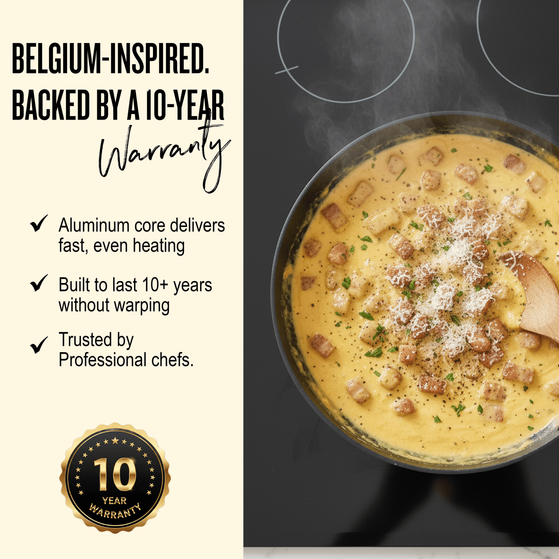 - Lightning-Fast Heat Distribution: Belgian-designed aluminum core eliminates hot spots.