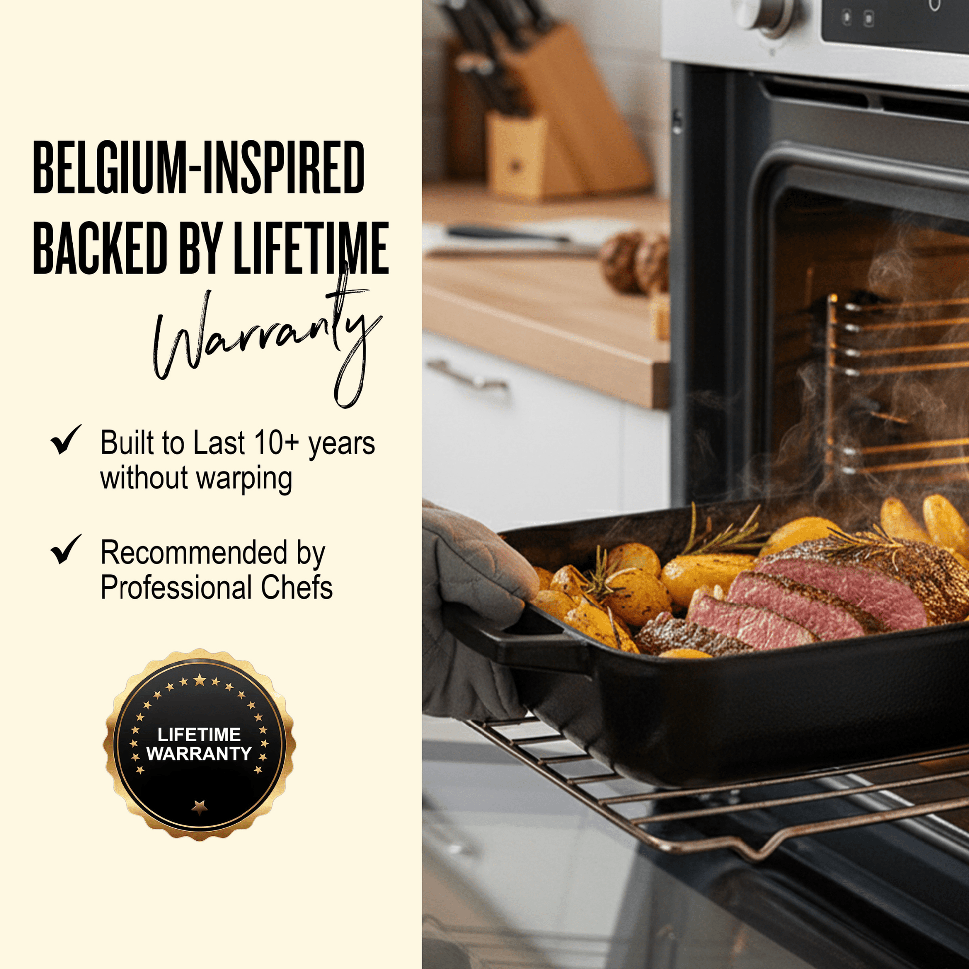 - Superior Heat Retention for Perfect Results: Roasts evenly from edge to center, no cold spots. Aluminum pans can't match the browning.